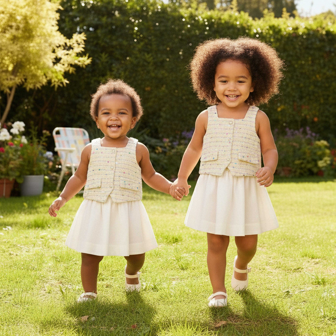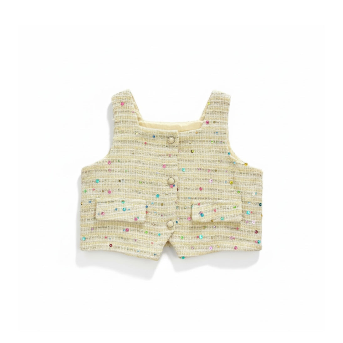 This White Sleeveless Tweeded Top brings elegance and charm to your little one’s wardrobe. Designed in a soft tweed-inspired fabric, it offers a textured, premium look while remaining gentle and comfortable for baby girls.